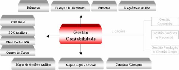 Contabilidade geral, Contabilidade analítica (classe 9) e Contabilidade orçamental.